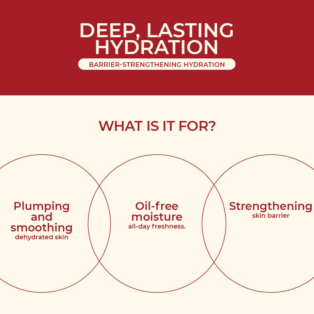 The ingredients Hyaluronic acid and Squalane are the hydrating agents. Hyaluronic acid used in Hyaluronic Acid Moisturizer, helps to attract the moisture on to the skin to provide hydration while Squalane helps to lock the moisture and mimics skins natural oils. Betaine with soothing property can limit skin irritation and redness, making it lovable to sensitive and reactive skin textures as well. The purpose of Ceramide in Hyaluronic Acid moisturizer is served by acting as a skin's protective barrier from moisture loss. Its hydrating property keeps the skin plump with diminished dryness and flakiness.